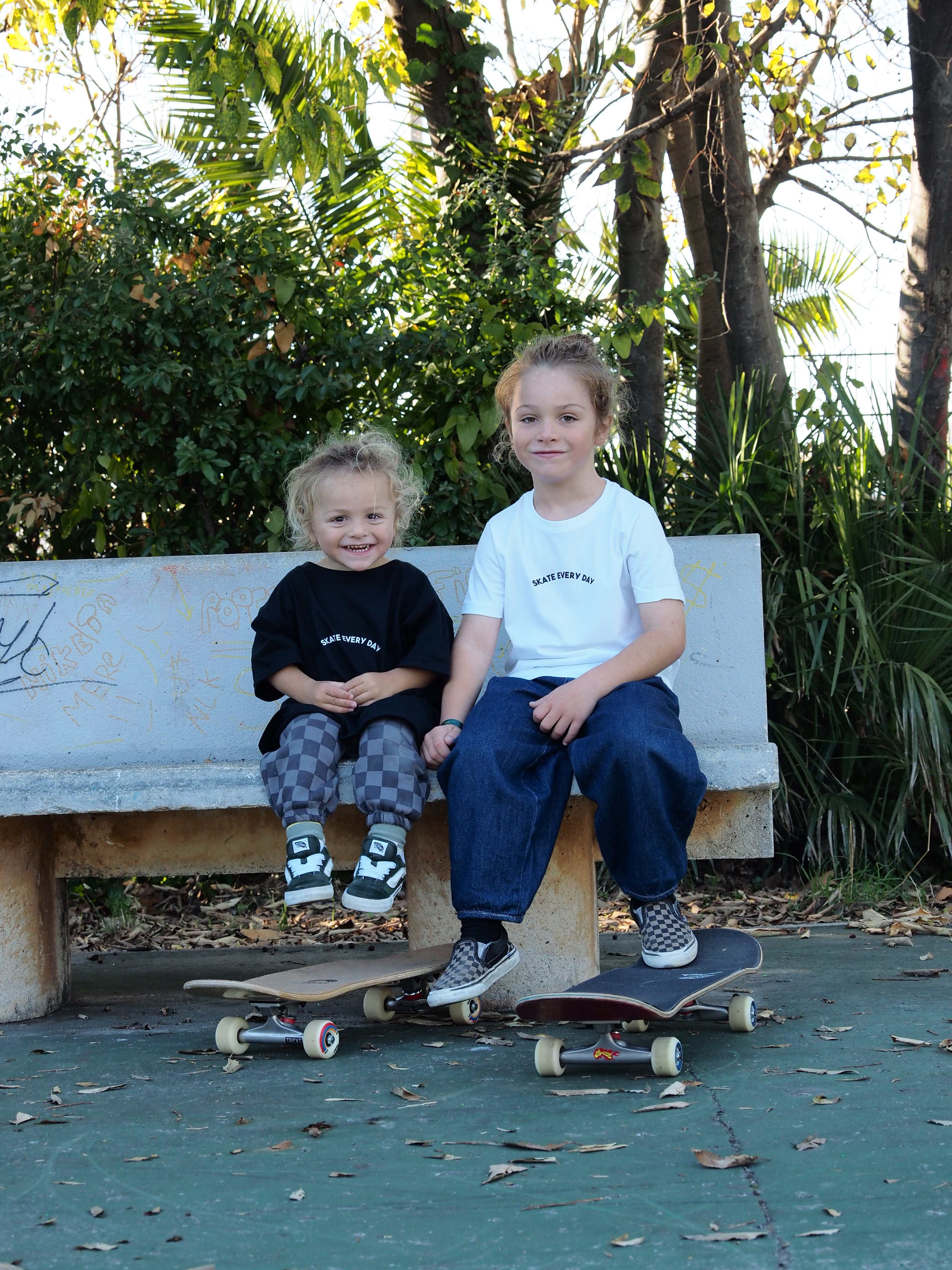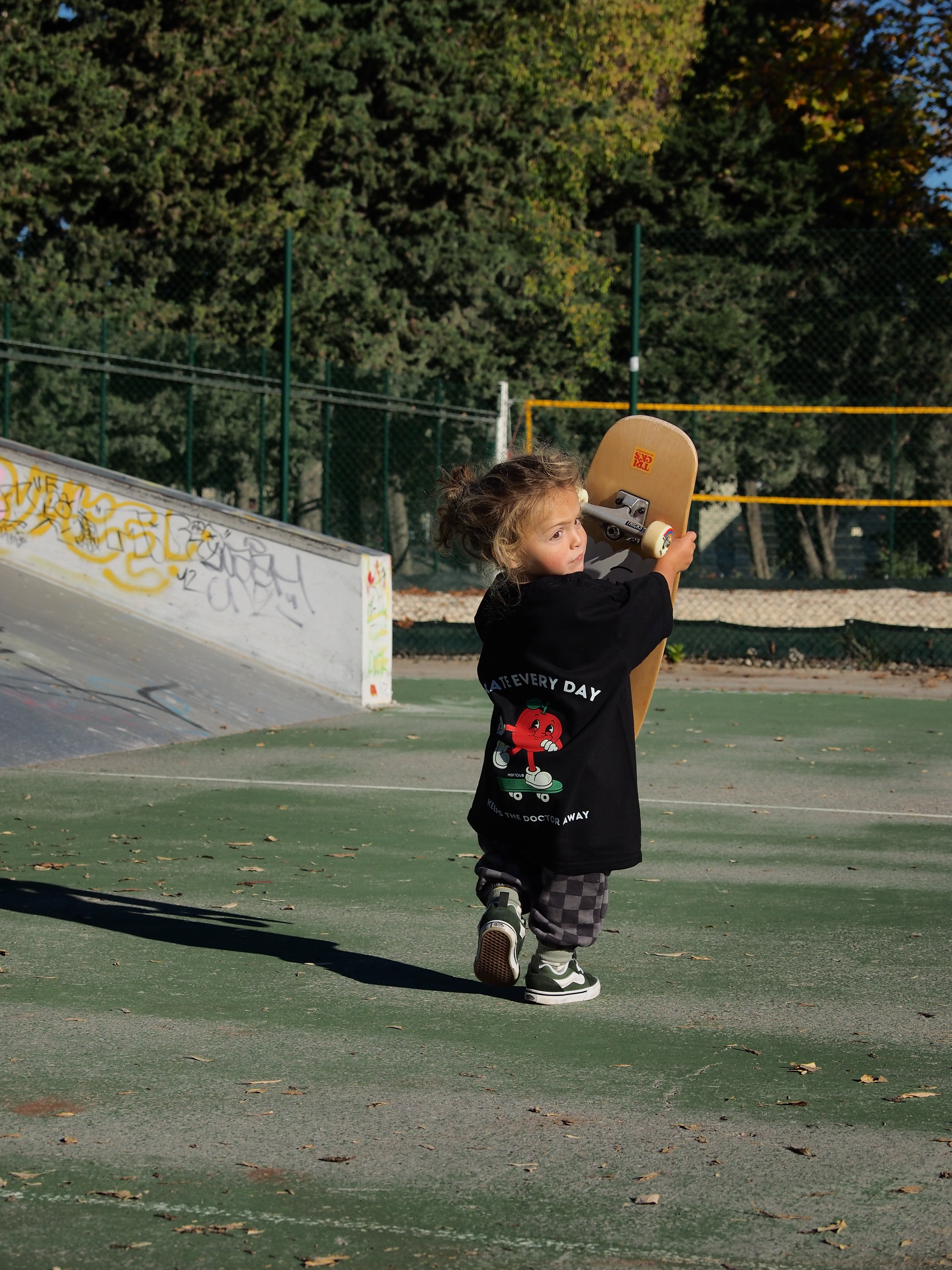 Coupe normale, unisexe. Les modèles ont 2 et 6 ans et portent les tailles 3/4 ans et 7/8 ans.