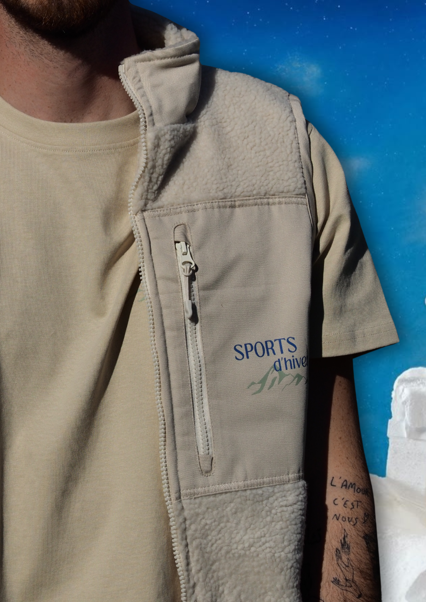 Veste Sherpa " Sports d’Hiver " - Beige